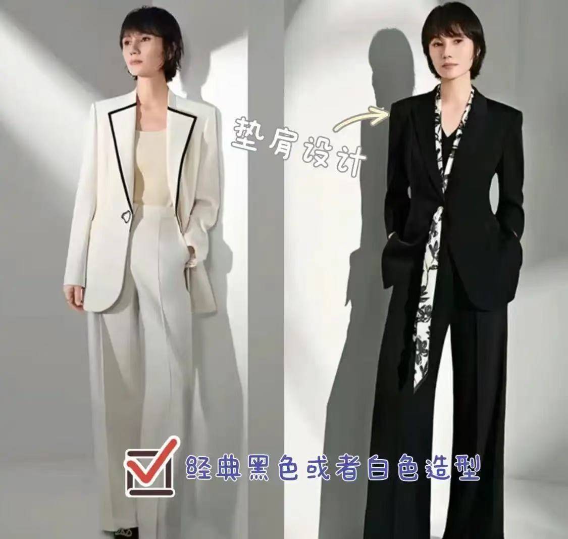 一头修剪极短的超级短发,将袁泉立体的五官和清澈的眼神完全凸显,气场全开。职场中,她喜欢搭配一套剪裁利落的西装套装,比如米色、黑色等基础色的西装套装,内搭T恤或者背心。短发的极致利落与西装线条的锐利感相辅相成,完美诠释了现代职场女性的睿智与强大气场。