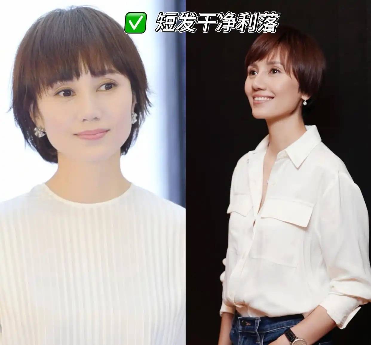 本期小舒就借鉴吴越和袁泉为实例,拆解她们身上那些我们普通人一学就会、一用就年轻的 “短发+穿搭”黄金公式,下面一探究竟: